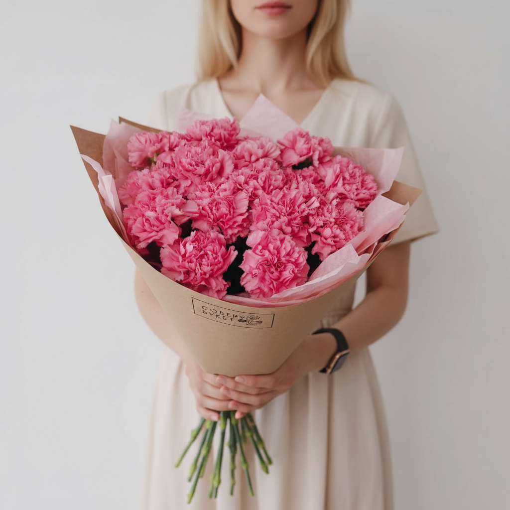 Почувствуйте нежность каждого лепестка этого великолепного букета! Розовые гвоздики - это уникальный подарок, который покорит любое сердце своей трепетностью и элегантностью. Спешите порадовать своих близких этим изысканным знаком внимания. Наш цветочный магазин гарантирует качество и стойкость цветов, ведь мы заботимся о том, чтобы каждый наш клиент получил только лучшее. Не упустите шанс подарить радость вместе с нашими прекрасными цветами!