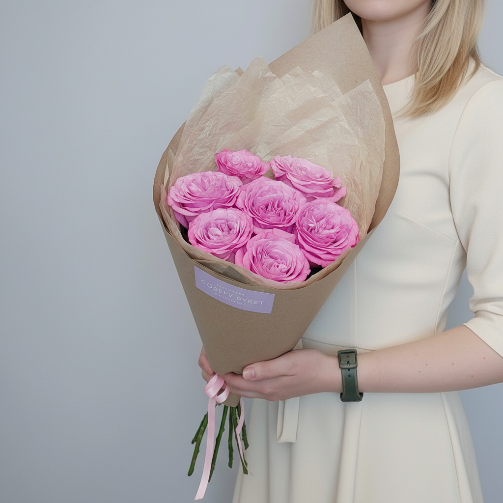 Представляем вашему вниманию букет из 7 пионовидных роз сорта Квин Краун в нежном розовом оттенке. Эти роскошные цветы с крупными бутонами и бархатистыми лепестками станут великолепным подарком для самых любимых и дорогих людей. Букет упакован в стильную подарочную бумагу, что придает ему еще больше шарма и изысканности. Подарите радость и восхищение вместе с букетом из 7 розовых пионовидных роз Квинс Краун!