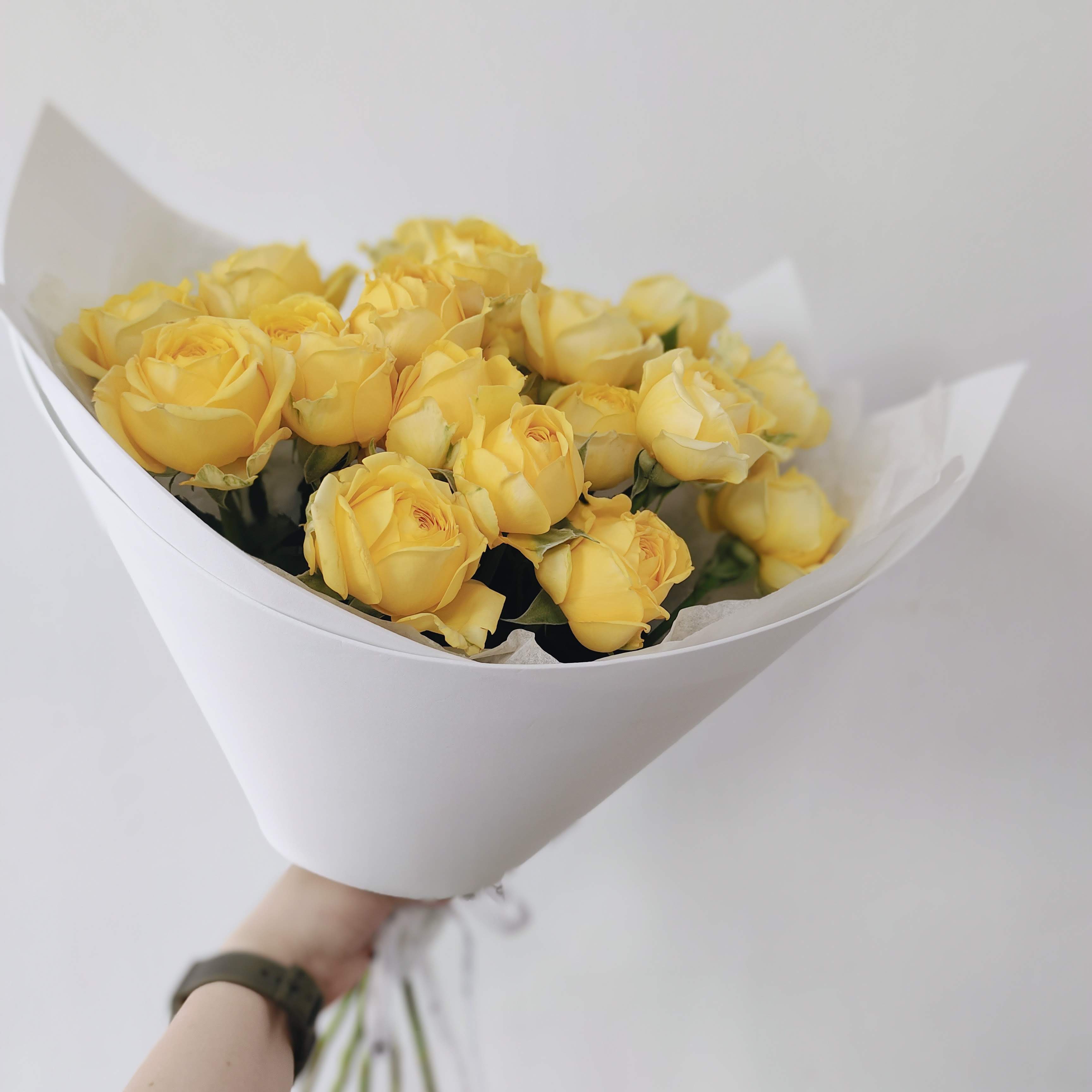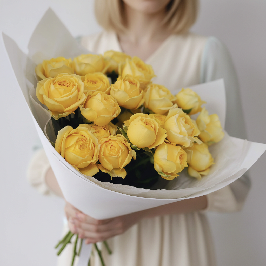 Почувствуйте себя героем сказки! Представляем вашему вниманию эксклюзивное предложение этого сезона – 7 жёлтых кустовых пионовидных роз. Эти роскошные цветы обладают магической притягательностью и способны очаровать любого своей пышной красотой и нежным ароматом. Идеальный выбор для тех, кто ценит элегантность и изысканность во всём. Не упустите возможность порадовать своих близких этим великолепным подарком! 7 жёлтых кустовых пионовидных роз