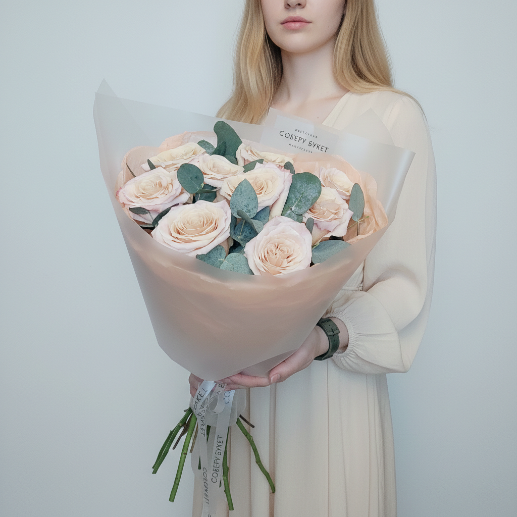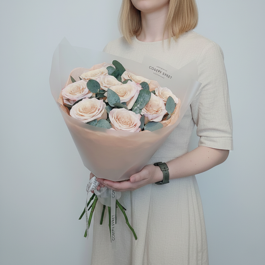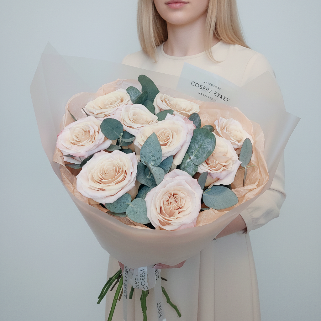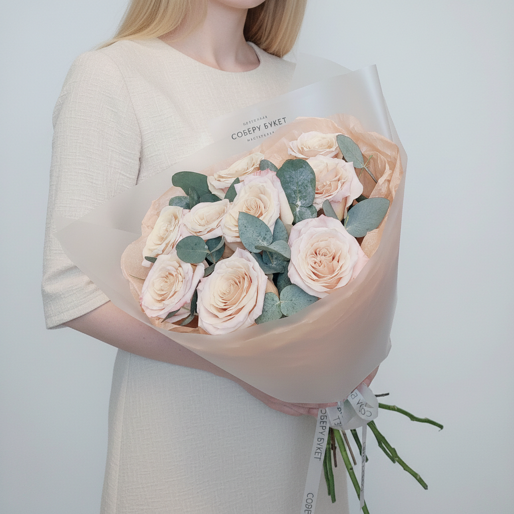 Почувствуйте роскошь природы вместе со свежим букетом из 9 импортных персиковых роз! А эвкалипт добавляет нотку экзотики к этому прекрасному подарку. Этот букет станет идеальным украшением любого праздника или романтического вечера. Не упустите возможность порадовать своих близких этим великолепным презентом уже сегодня!