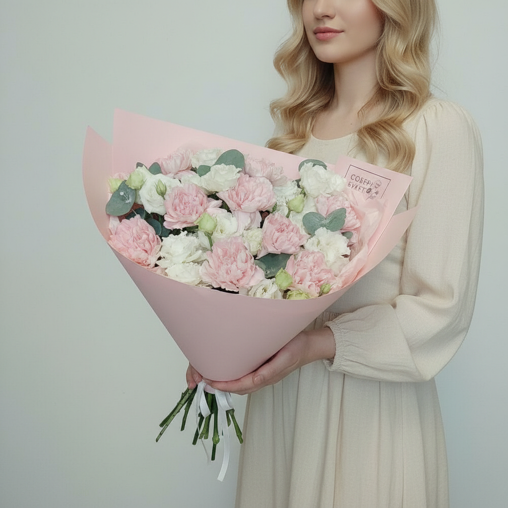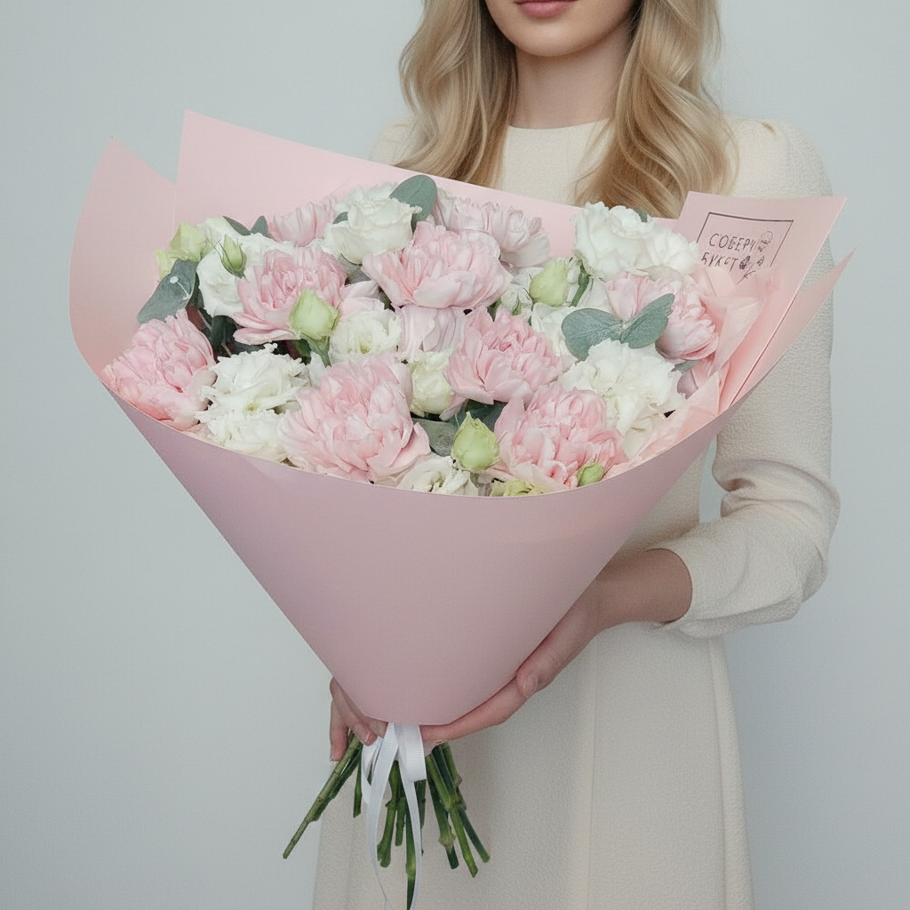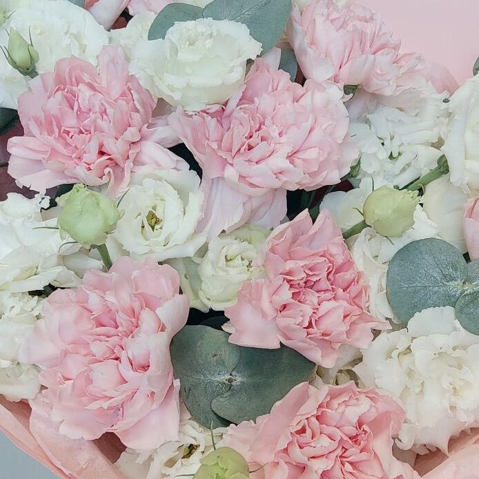 Представляем вам букет «Розовый рассвет»! В нём нежные розовые гвоздики и белоснежная эустома создают великолепную композицию, которая станет прекрасным подарком к любому празднику. Будь то День рождения, юбилей, свадьба или свидание – этот букет будет уместен всегда. Заказав его сегодня, уже завтра вы сможете порадовать своих близких свежим и ароматным «Розовом рассветом».