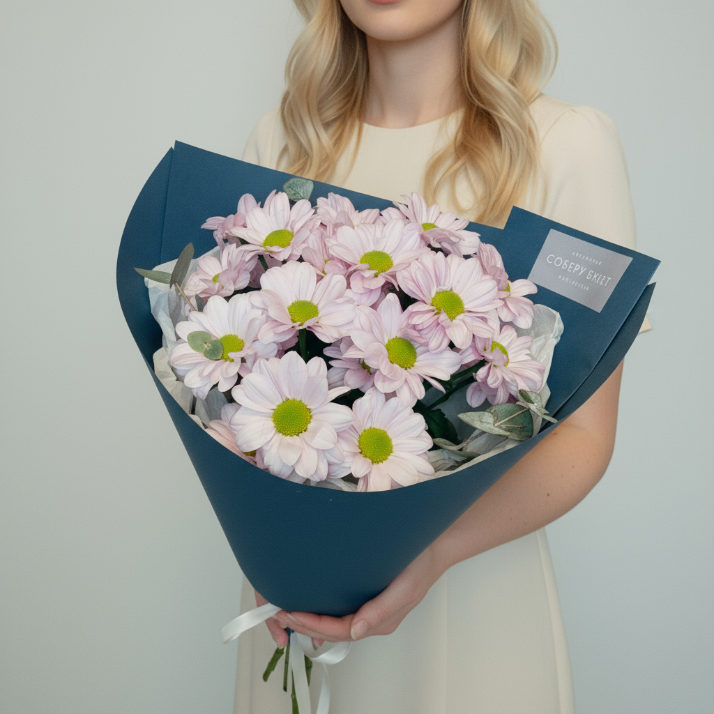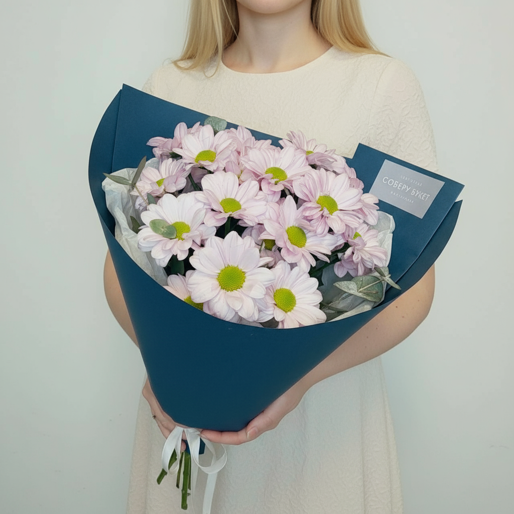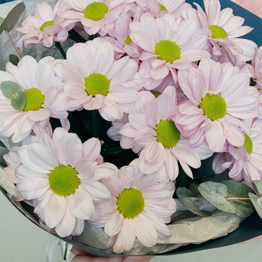 Букет из розовых ромашковых хризантем с эвкалиптом Этот восхитительный букет станет прекрасным подарком для тех, кто ценит оригинальность и красоту природы! Ромашковые хризантемы символизируют чистоту и искренние чувства, а добавление эвкалипта придает композиции свежесть и необычность. Нежные оттенки цветов создадут атмосферу уюта и гармонии в любом интерьере. Подарите своим близким частичку природной красоты и тепла!