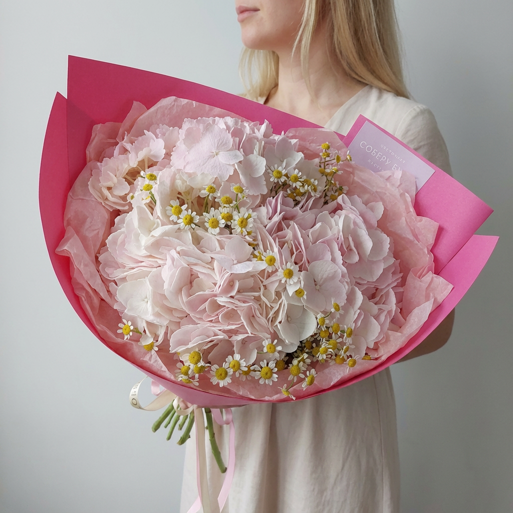 Почувствуйте гармонию природы в каждом лепестке! Представляем вам очаровательный букет из гортензии и полевой ромашки – идеальный подарок для самых любимых моментов жизни. Этот великолепный дуэт цветов воплощает естественную красоту и легкость летнего дня. Выбирайте радость и вдохновение вместе с нами! Доступны доставка по городу и самовывоз!