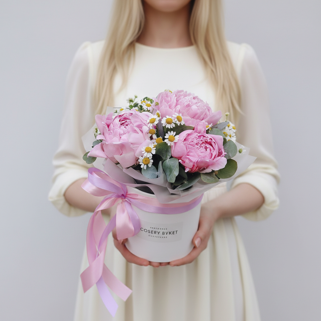 Почувствуйте благоухание лета вместе с нашими ароматными пионами и полевыми ромашками! Теперь они доступны в удобной подарочной коробке, которая станет прекрасным дополнением к вашему подарку. Подчеркните свою заботу о близких людях этим ярким букетом от нашего цветочного магазина "Соберу букет"! Заказывайте уже сегодня!
