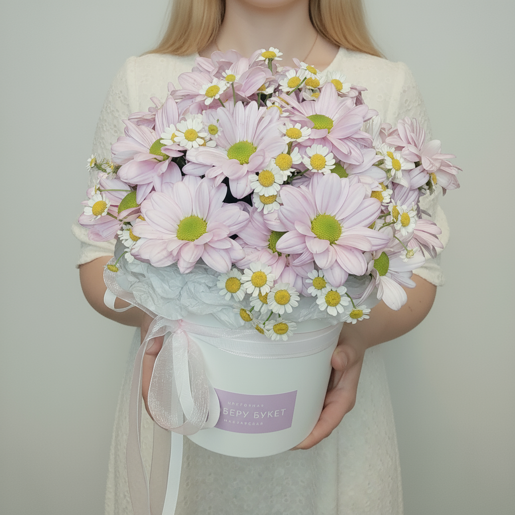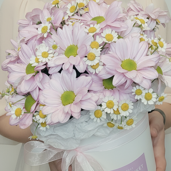 Почувствуйте аромат лета! Только у нас роскошная ромашковая хризантема и милые сердцу полевые ромашки, собранные руками заботливых флористов специально для вас. Удивительный подарок близким по приятному поводу или просто так – чтобы порадовать любимых людей. Спешите купить нашу чудесную композицию «Ромашковое счастье» прямо сейчас!