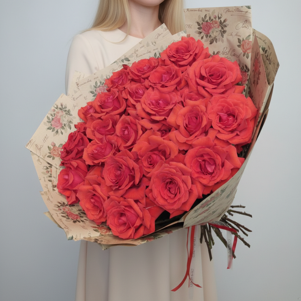 Восхищайтесь роскошью бутонов этих роз! В каждом стебле прячется по одному цветку невероятной красоты, а их количество достигает целых 25 штук! Французские розы сорта «Нина» так называются неспроста – они действительно достойны королевы! Их бархатные лепестки цвета сочной фуксии никого не оставят равнодушным. Очаровательные цветы будут радовать глаз как в монобукете, так и в сочетании с другими растениями. Поспешите приобрести эту красоту в нашем магазине!