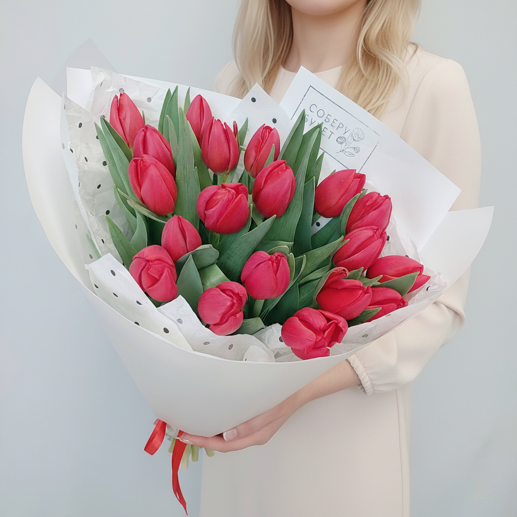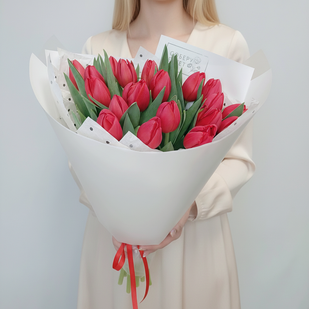 Почувствуйте страсть и глубину чувств, которые таят в себе эти 19 алых тюльпанов. Их величественная красота и тонкий аромат окунут вас в мир волшебства и романтики. Этот букет станет идеальным подарком для тех, кто жаждет ярких эмоций и незабываемых впечатлений. Покажите свою любовь и восхищение, подарив этот великолепный знак внимания!