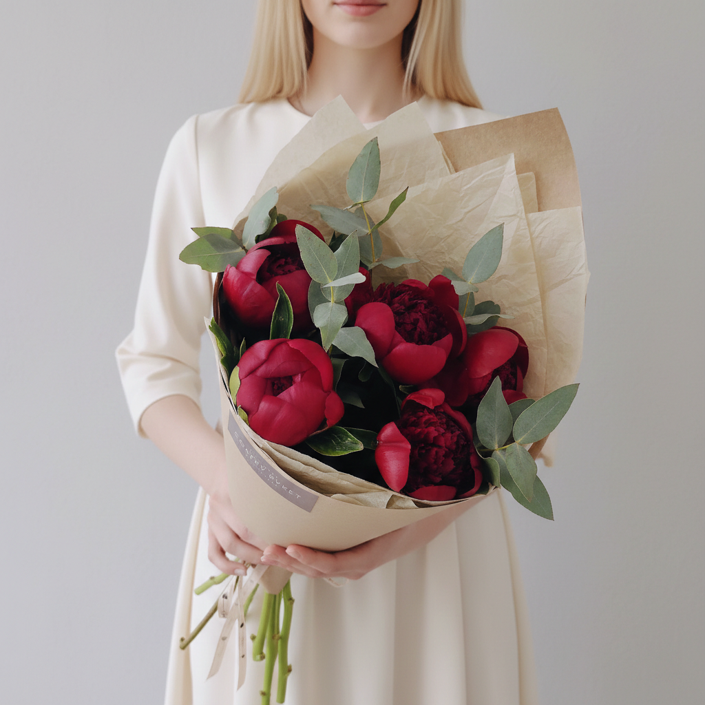 Почувствуйте роскошь природы вместе с букетом из пяти великолепных бордовых пионов от нашего цветочного магазина "Соберу букет"! Эти королевские цветы в обрамлении свежего эвкалипта создадут атмосферу утонченности и благородства, наполняя ваш дом ароматами лета. Будь то подарок к особенному случаю или просто способ порадовать себя – этот букет станет истинным украшением любого интерьера. Закажите сейчас и наслаждайтесь красотой каждый день!