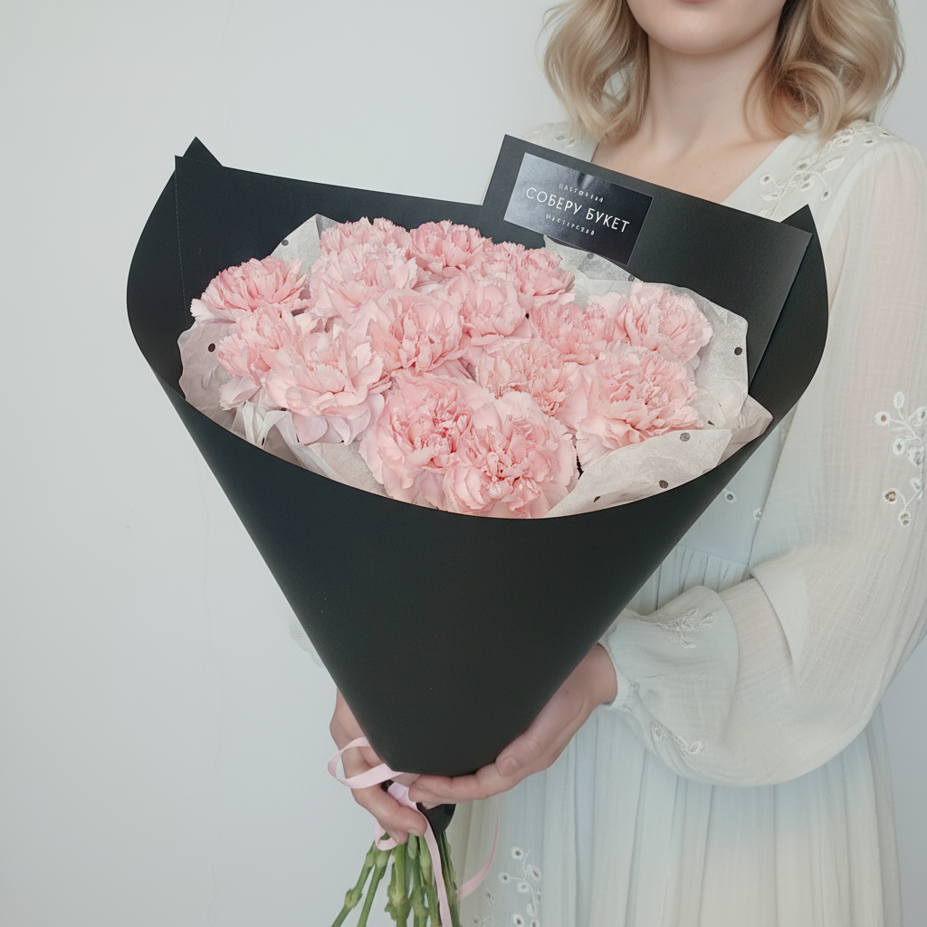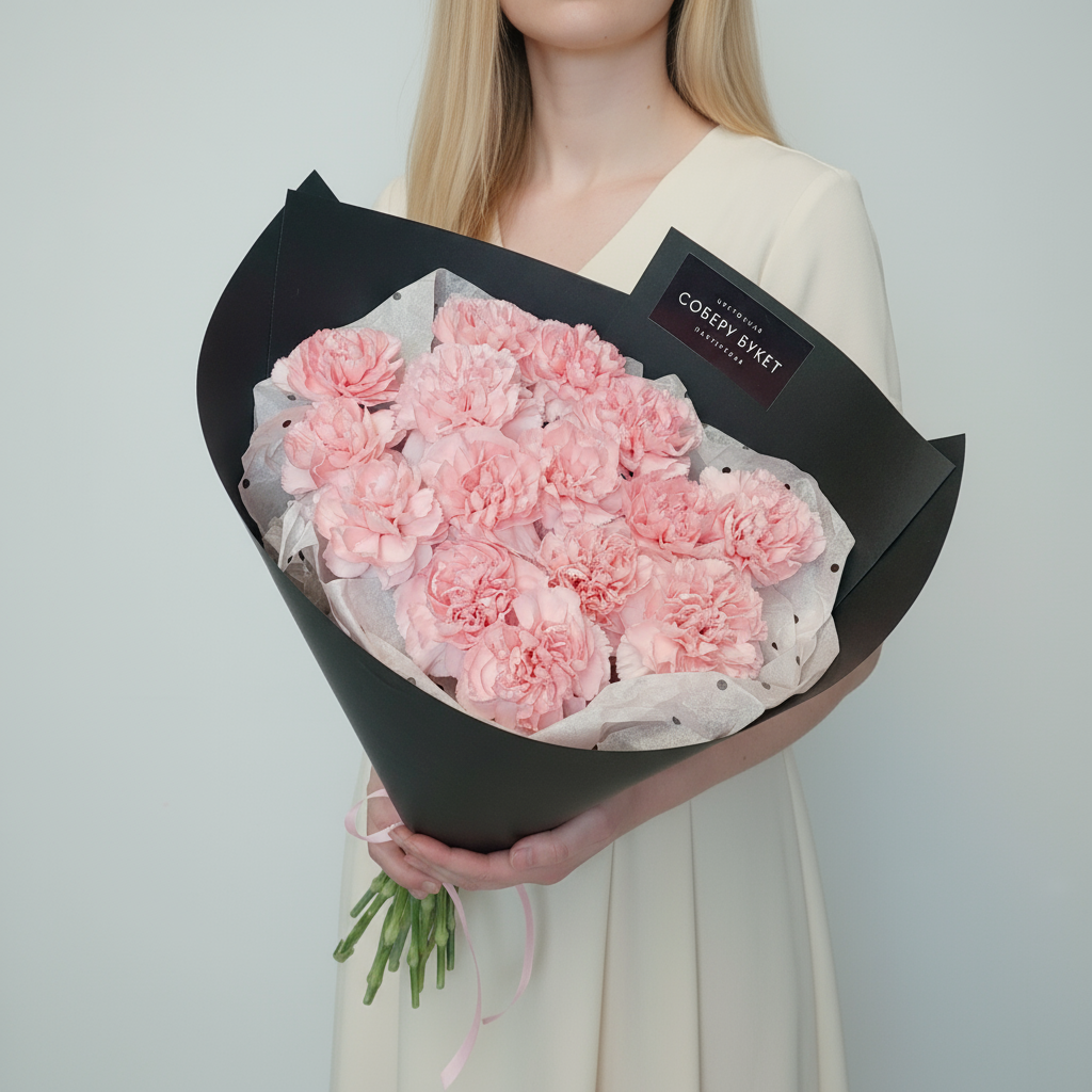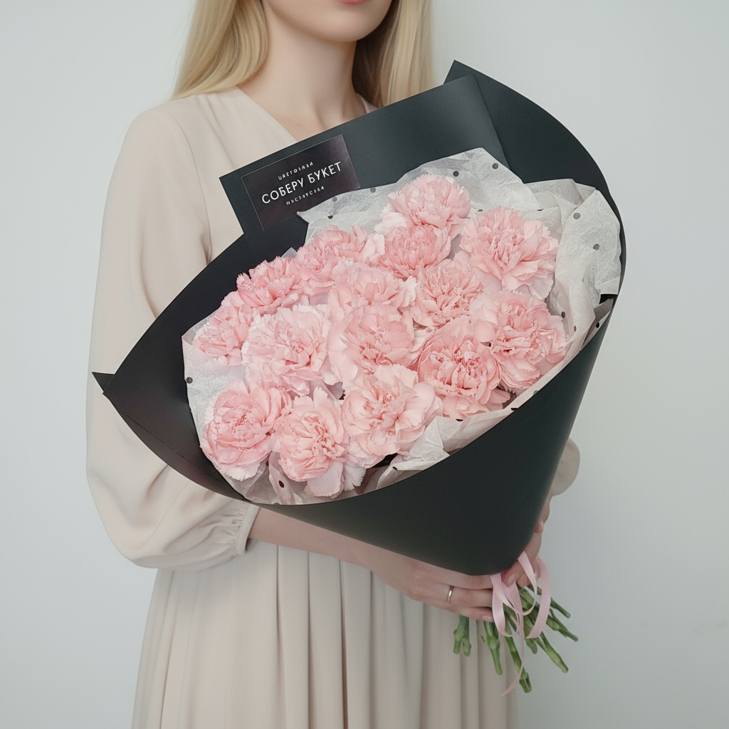 Представляем вашему вниманию великолепный букет из 15 роскошных розовых гвоздик. Эти элегантные цветы обладают уникальным шармом и прекрасно подойдут для любого торжества или романтического свидания. Букет оформлен нашими лучшими флористами с использованием самых свежих цветов, что гарантирует его долговечность и непревзойденную красоту. Подарите радость своим близким вместе с нашим восхитительным букетом!