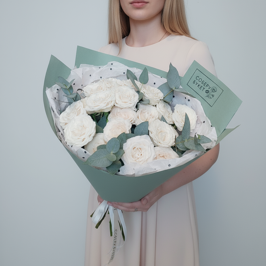 Почувствуйте благоухание лета вместе с нашим букетом! Изысканные 5 кустовых кремовых роз, дополненные свежестью эвкалипта, создадут атмосферу легкости и романтики. Этот великолепный подарок идеально подойдет к любому празднику и станет ярким акцентом любого интерьера. Наши цветы – это всегда высокое качество и незабываемый аромат.