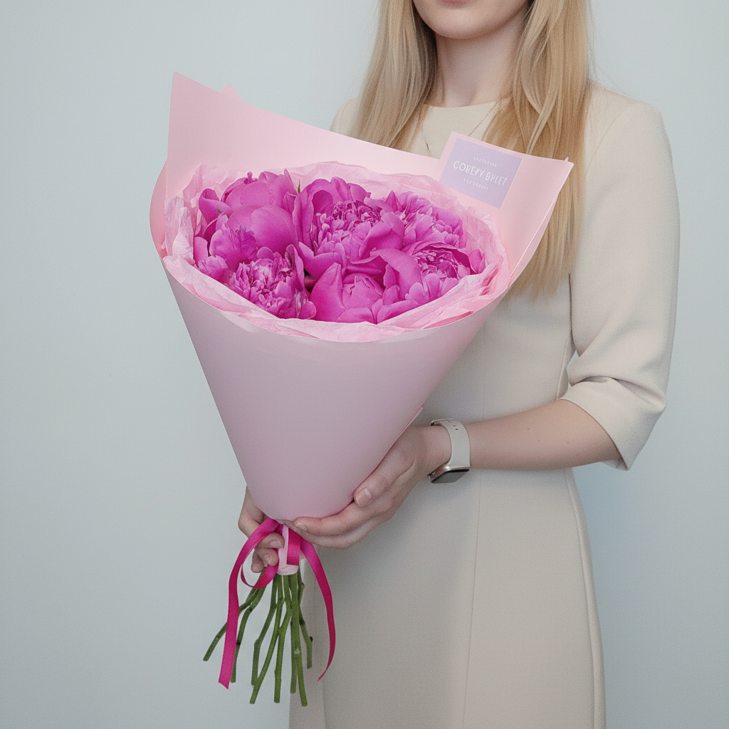 Погрузитесь в атмосферу летнего сада вместе с букетом из девяти ароматных малиновых пионов! Эти роскошные цветы станут прекрасным подарком для ваших близких и украшением любого интерьера. Пионы символизируют процветание, поэтому подарите себе немного удачи и купите этот великолепный букет уже сегодня! Мы гарантируем свежесть каждого цветка, ведь мы заботимся о своих клиентах. Не упустите возможность порадовать себя и окружающих этим восхитительным презентом!