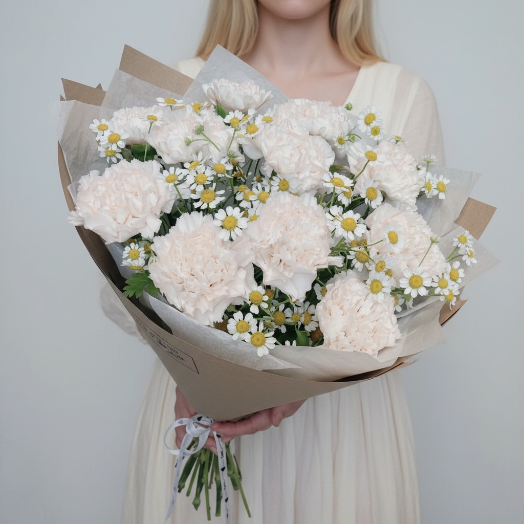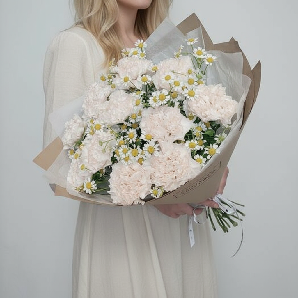 Почувствуйте аромат свежести с нашими новыми букетами! Представляем вашему вниманию эксклюзивное предложение от нашего цветочного магазина "Соберу букет" – 11 кремовых гвоздик вместе с милыми полевыми ромашками. Этот необычный контраст между элегантной классикой и простотой природы создаёт уникальную атмосферу уюта и тепла. Наши цветы выращены специально для вас, чтобы каждый день радовать глаз своей красотой и наполнять дом незабываемым благоуханием. Спешите заказать свой идеальный букет уже сегодня!