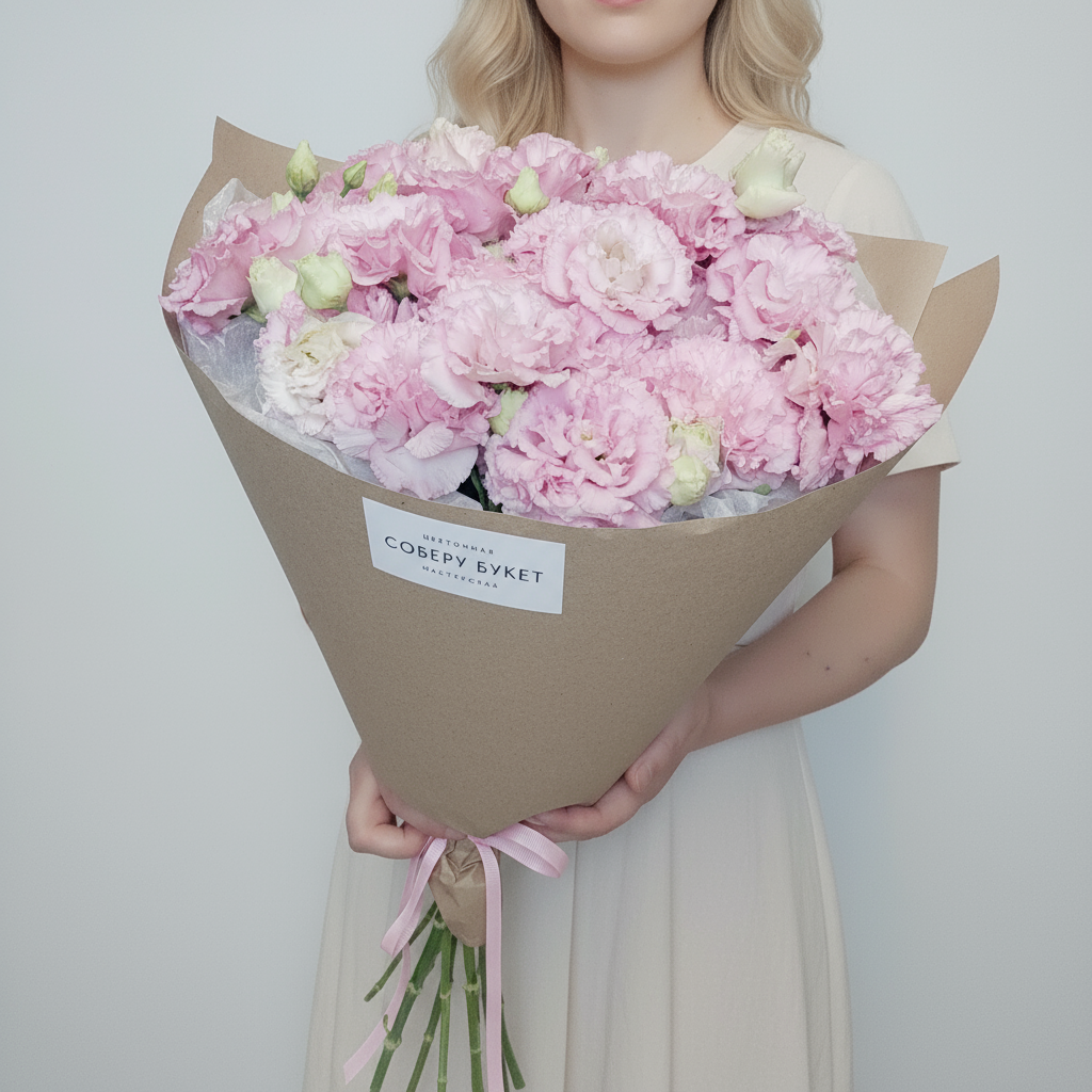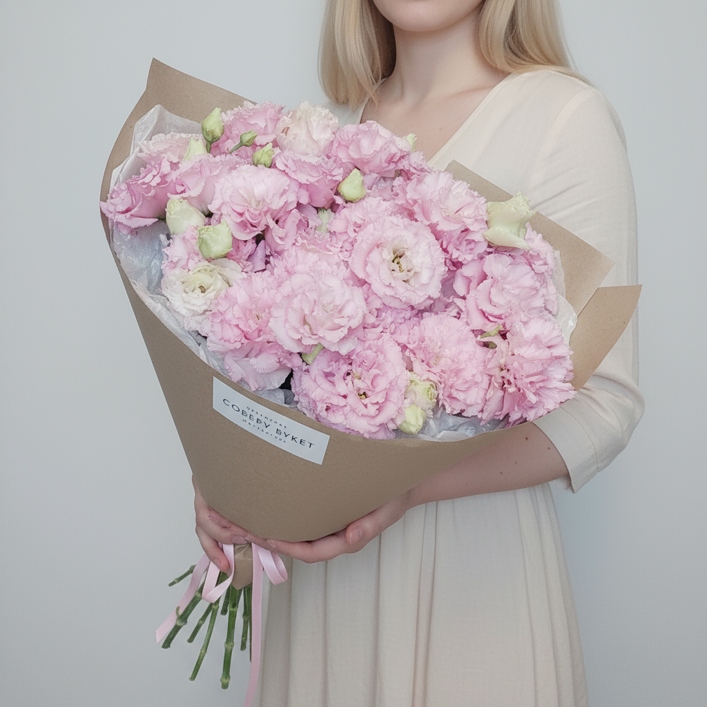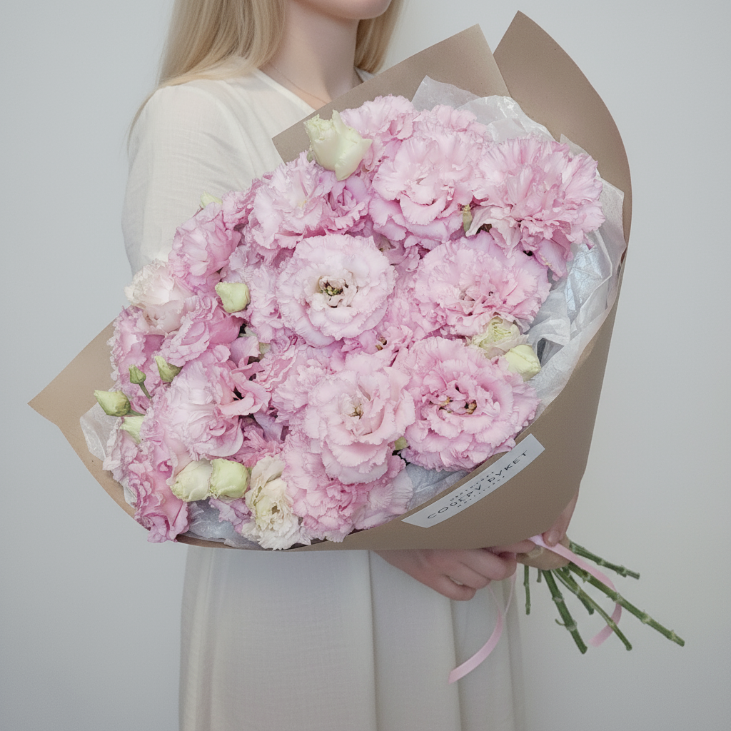 Почувствуйте прикосновение нежности! В нашем магазине Вы можете приобрести прекрасные букеты из розовой эустомы – этого элегантного цветка, который символизирует верность, преданность и чистоту. Девять веточек махровой эустомы подарят Вам ощущение легкости и воздушности. Такой подарок станет замечательным знаком внимания Вашим близким и родным людям. Эустома будет прекрасно смотреться как в монобукете, так и в сочетании с другими цветами. Спешите порадовать себя и своих любимых этой красотой!