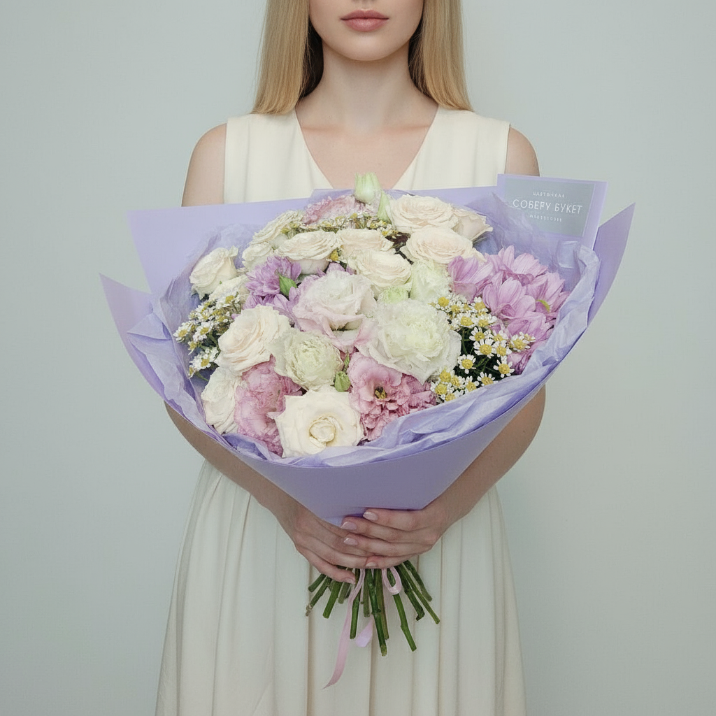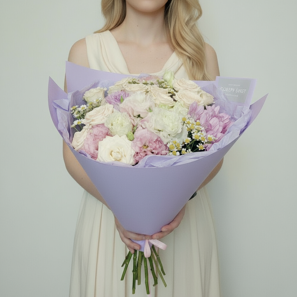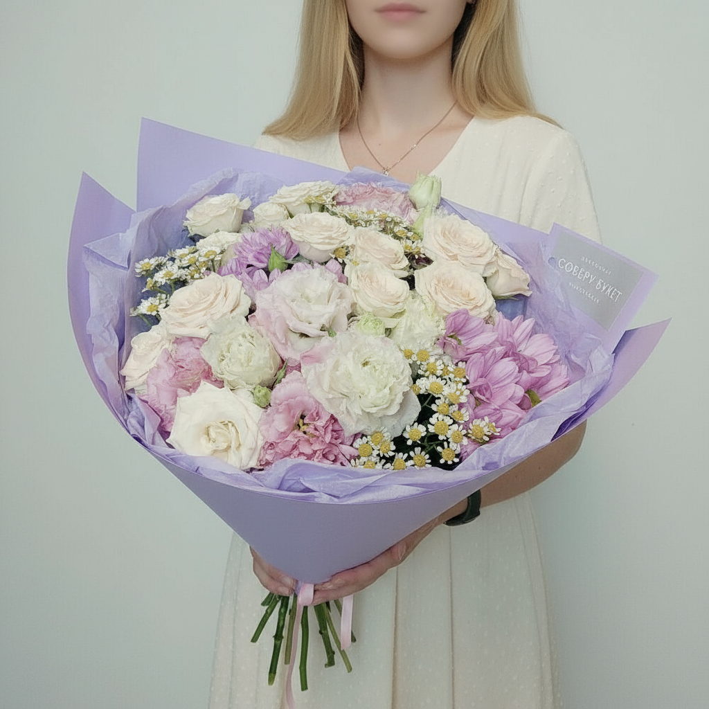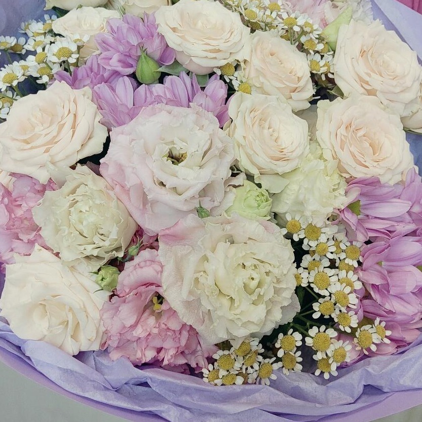 Представляем вашему вниманию восхитительный букет «Летняя поляна», который создан специально для того, чтобы дарить радость и восторг! В нём сочетаются элегантность кустовой кремовой розы с лёгкостью матрикарии, благородством хризантемы розовой и утончённостью эустомы розовой. Этот букет станет идеальным подарком по любому поводу – будь то день рождения, юбилей, свадьба или просто знак внимания любимому человеку. Подарите близким частичку красоты и счастья вместе с нашим эксклюзивным букетом!