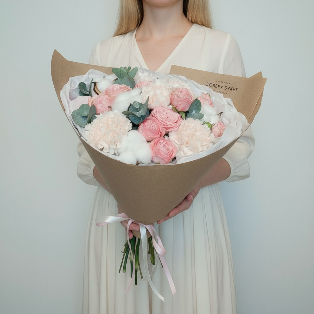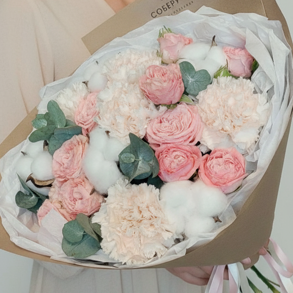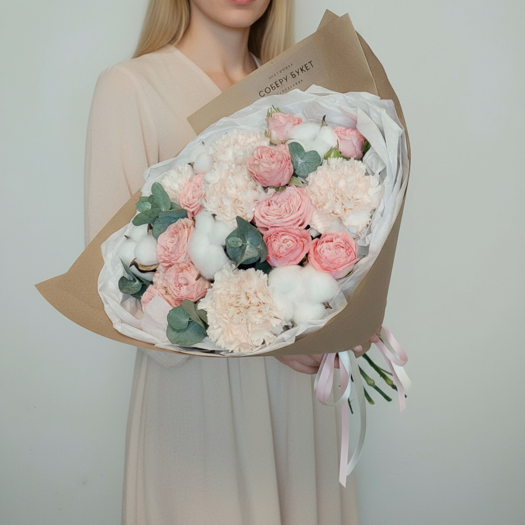Пионовидные розы, гвоздики и хлопок – это трио красоты и нежности теперь можно найти у нас! Позвольте себе окунуться в мир ярких красок и незабываемых ароматов. Наши цветы всегда свежие и радуют глаз своим совершенством. Букеты для любого случая – день рождения, свадьба, юбилей или просто чтобы порадовать любимого человека. Загляните к нам и найдите свой идеальный букет уже сегодня! Цветочный магазин «Соберу букет» – когда цветы рассказывают о ваших чувствах…