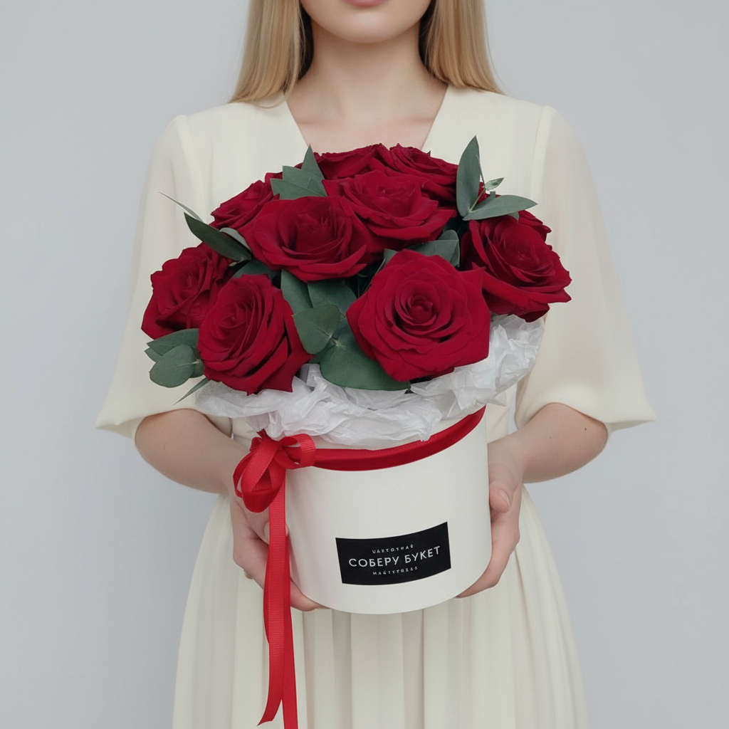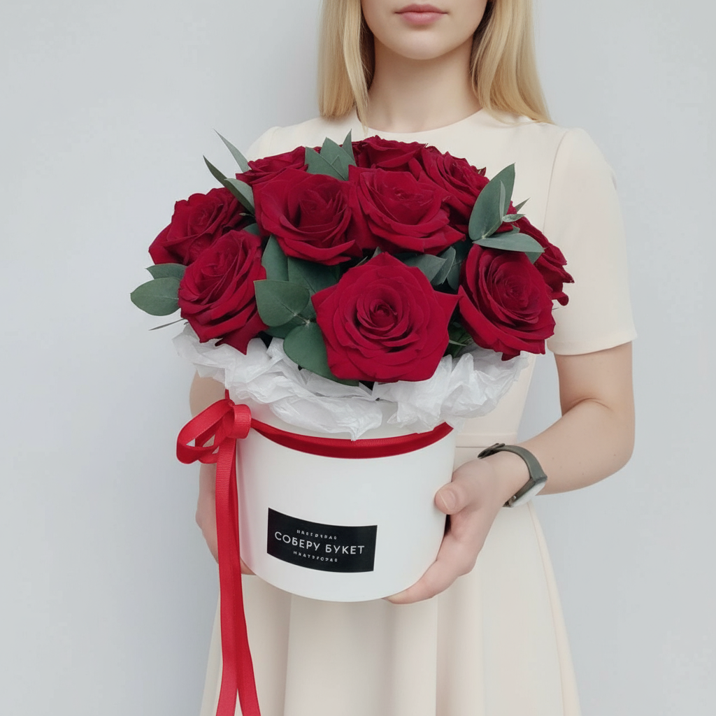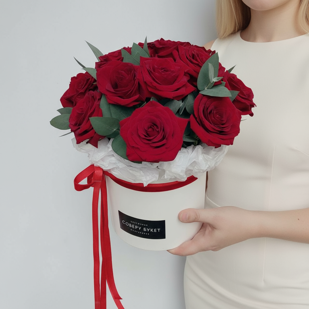 Почувствуйте любовь каждой клеточкой! Изысканные 15 красных роз в обрамлении свежего эвкалипта теперь доступны в стильной шляпной коробке. Этот элегантный подарок станет идеальным выражением ваших чувств и наполнит день адресата ароматами лета и теплом вашего сердца. Закажите сейчас и подарите радость!