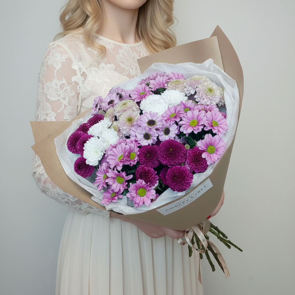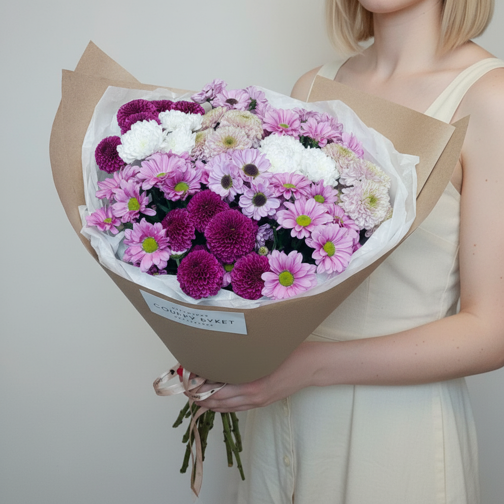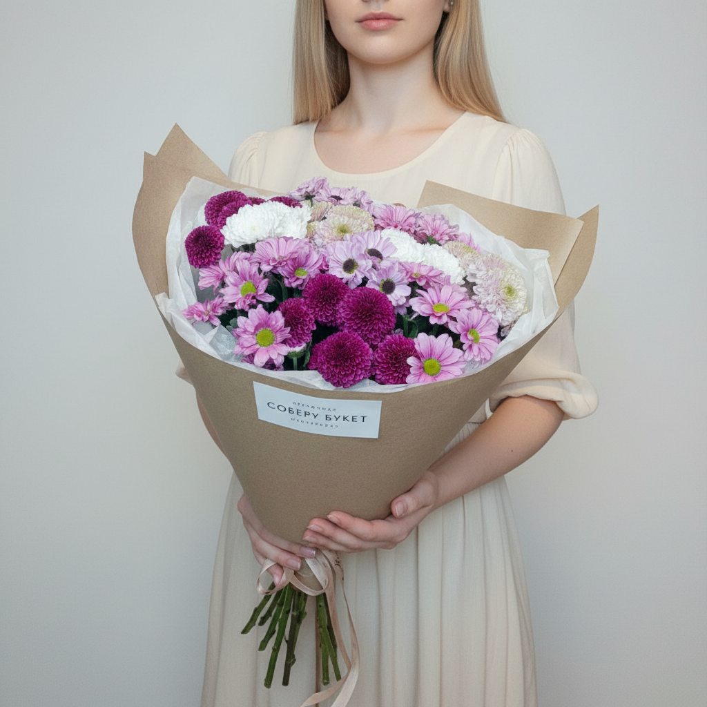 Этот букет станет идеальным подарком для вашей любимой мамы! Хризантемы Сантини микс символизируют чистоту сердца и искренность чувств. Яркие цвета подарят массу позитивных эмоций и украсят любой интерьер. Не упустите шанс порадовать самого близкого человека таким замечательным презентом!