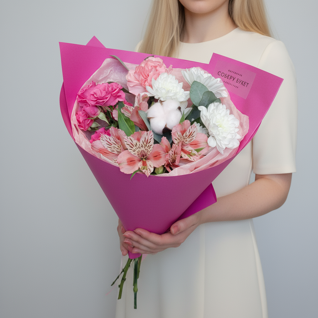 Представьте себе сборный букет, который идеально подойдет в качестве восхитительного подарка для вашей любимой ! Этот букет сочетает в себе самые свежие цветы лета – сочные розы, элегантный эвкалипт, романтичную хризантему и яркую альстрамерию. Каждый цветок подобран так, чтобы передать вашу любовь, страсть и заботу. Такой подарок непременно порадует её сердце и станет украшением любого дня.