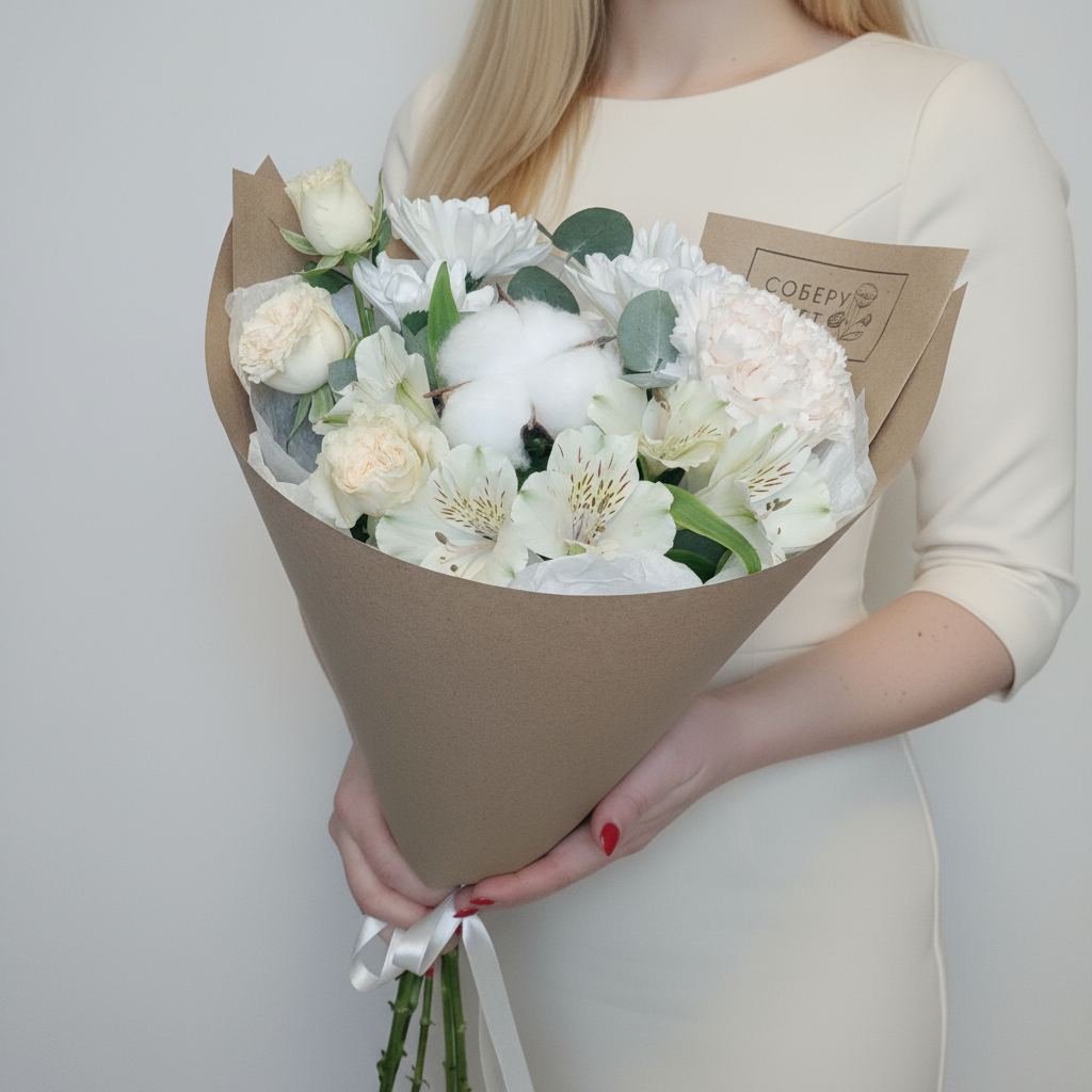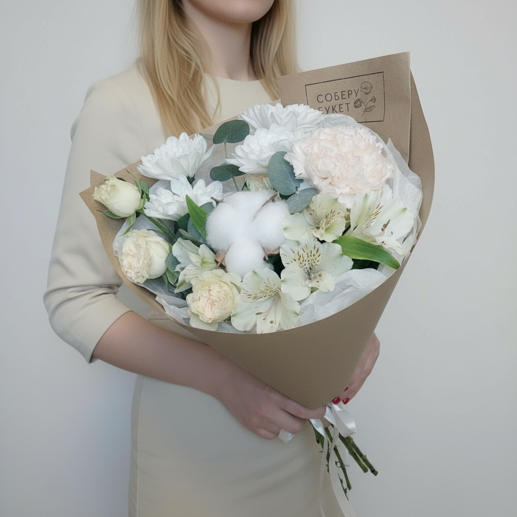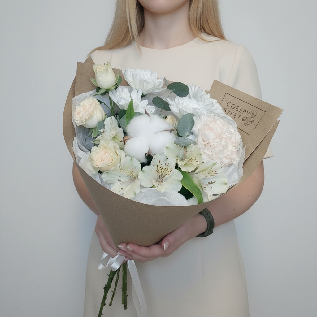 Представьте себе сборный букет, который идеально подойдет в качестве восхитительного подарка для вашей любимой ! Этот букет сочетает в себе самые свежие цветы лета – нежные розы, элегантный эвкалипт, романтичную хризантему кремовую альстрамерию. Каждый цветок подобран так, чтобы передать вашу любовь, страсть и заботу. Такой подарок непременно порадует её сердце и станет украшением любого дня.