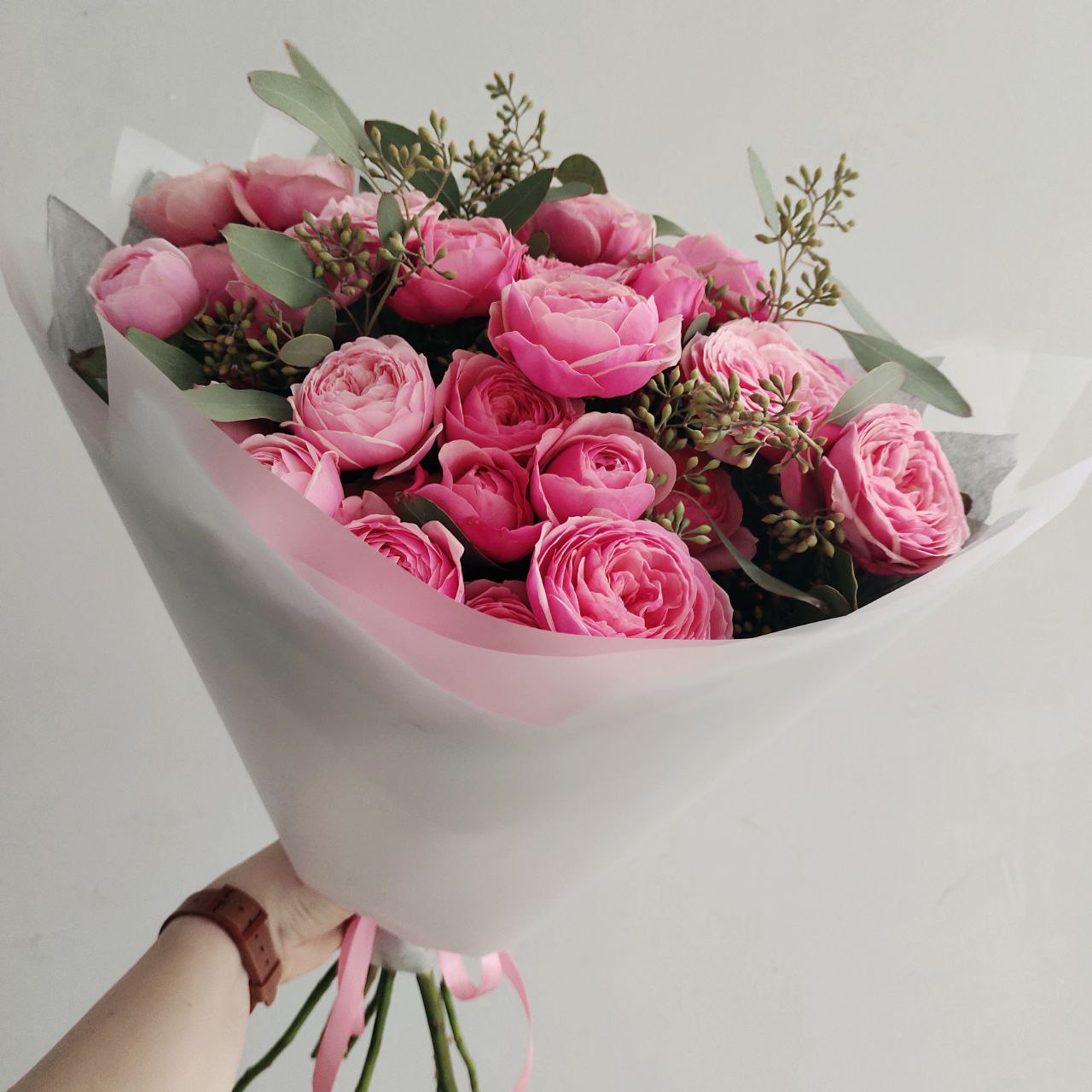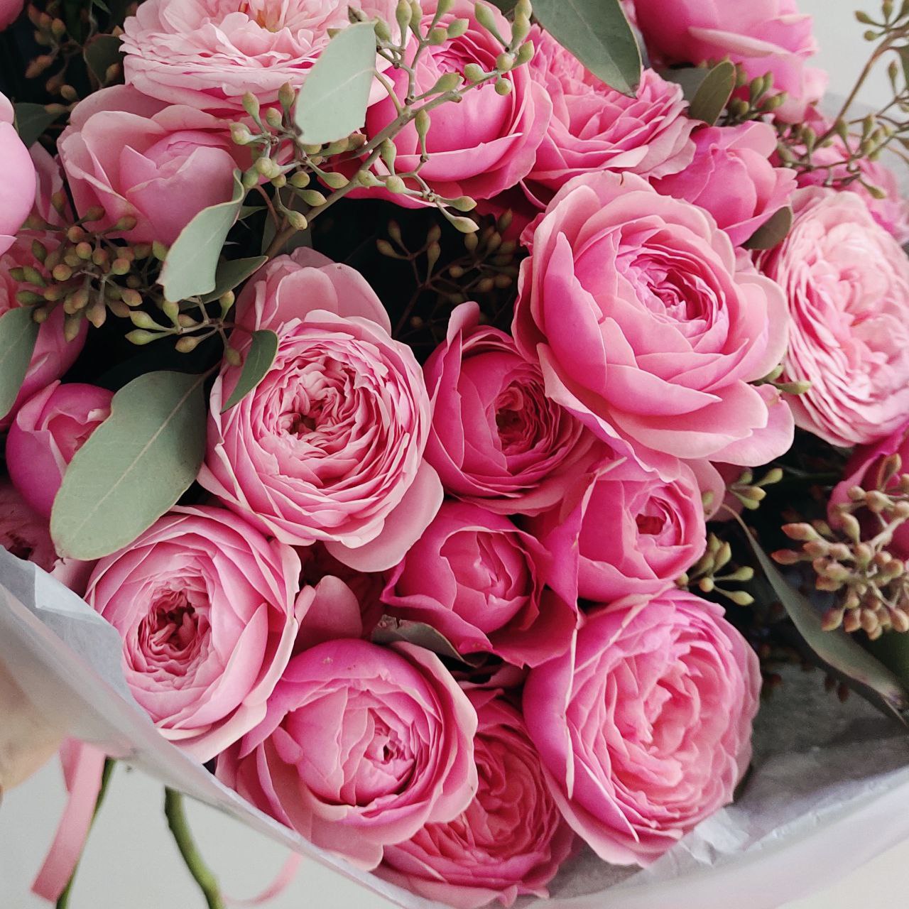 Этот восхитительный букет из кустовых пионовидных малиновых роз станет идеальным подарком для любимых! Нежные лепестки этих цветов словно воплощают саму красоту природы. Каждый бутон уникален по форме и оттенку, создавая гармоничную композицию, которая обязательно привлечет внимание и подарит массу положительных эмоций. Такой подарок будет радовать глаз и наполнять сердце теплом долгое время.
