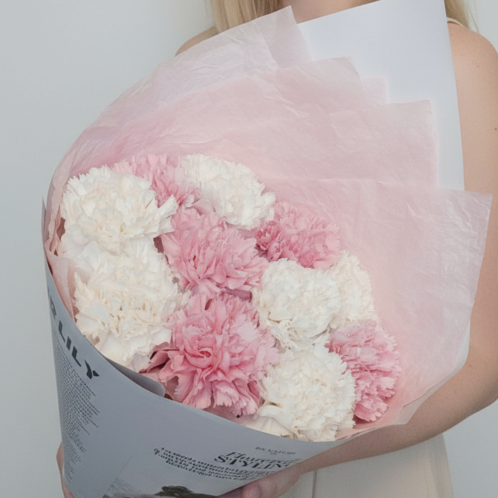 Хотите сделать приятное близким? Подарите букет свежих цветов! В нашем магазине вас ждёт огромный выбор флористических композиций. Обратите внимание на этот милый букетик из 11 кремовых и розовых гвоздик. Он так трогателен своей простотой и непосредственностью! Ваши близкие непременно оценят такой жест внимания. Ведь он создан специально для того, чтобы дарить радость и хорошее настроение!