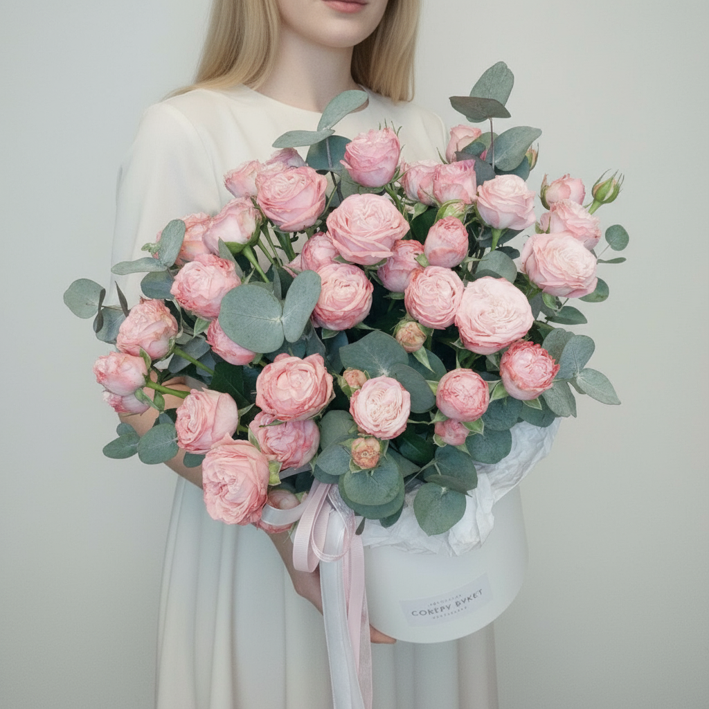 Почувствуйте аромат лета вместе с нашими кустовыми розами! Сочные оттенки розовых бутонов гармонично сочетаются со свежестью эвкалипта – идеальный подарок любимым людям. Эта коробка цветов подарит радость и счастье каждому дому! Спешите приобрести нашу новинку уже сегодня!