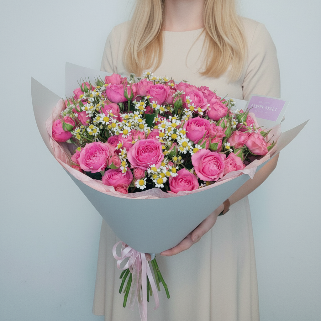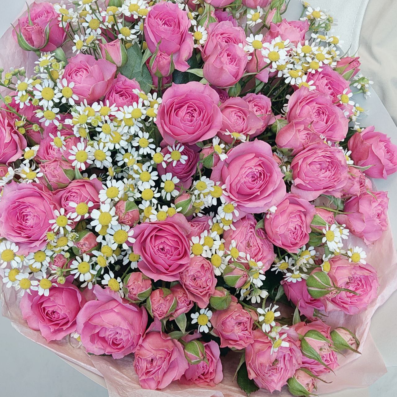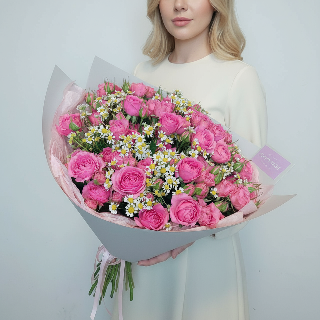Букет из кустовых малиновых роз и полевых ромашек – это идеальное сочетание красоты и нежности. Он станет великолепным подарком для вашей возлюбленной, подчеркивая ваши чувства к ней. Закажите его прямо сейчас!