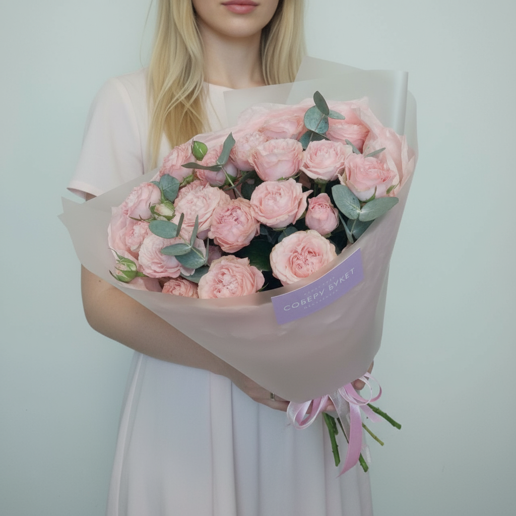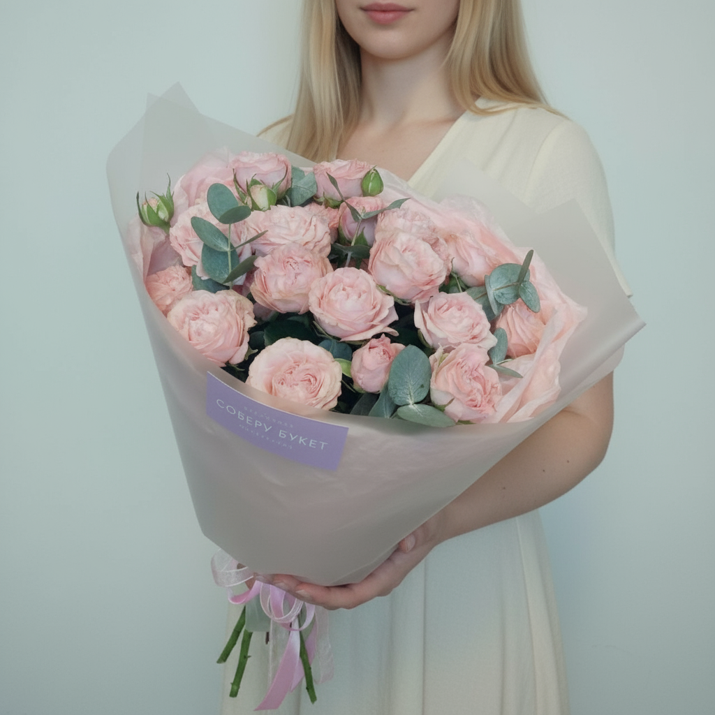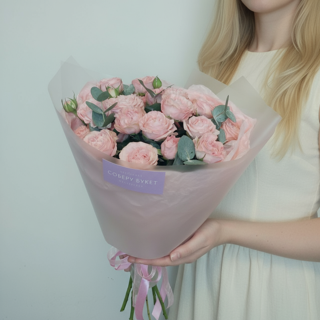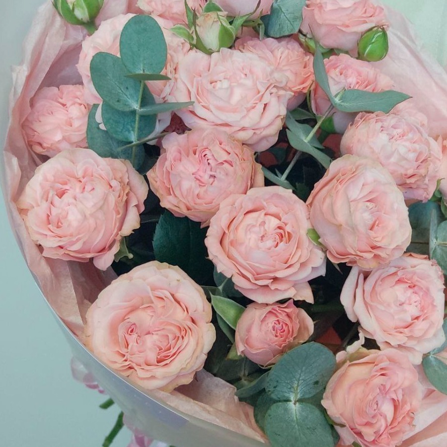 5 кустовых пионовидных роз с эвкалиптом. Почувствуйте аромат лета вместе с нашими роскошными букетами! Представляем вам нашу новинку – 5 кустовых пионовидных роз, гармонично переплетенные с нежным эвкалиптом. Это идеальный выбор для тех, кто ценит естественную красоту и хочет привнести нотку романтики в любой день. Наши цветы всегда свежие, как будто только что собраны в саду, благодаря чему они будут радовать вас своей яркостью и ароматом долгое время. Не упустите возможность порадовать своих близких этим прекрасным подарком! Заказывайте сейчас и наслаждайтесь каждым моментом жизни с нашими великолепными цветами!